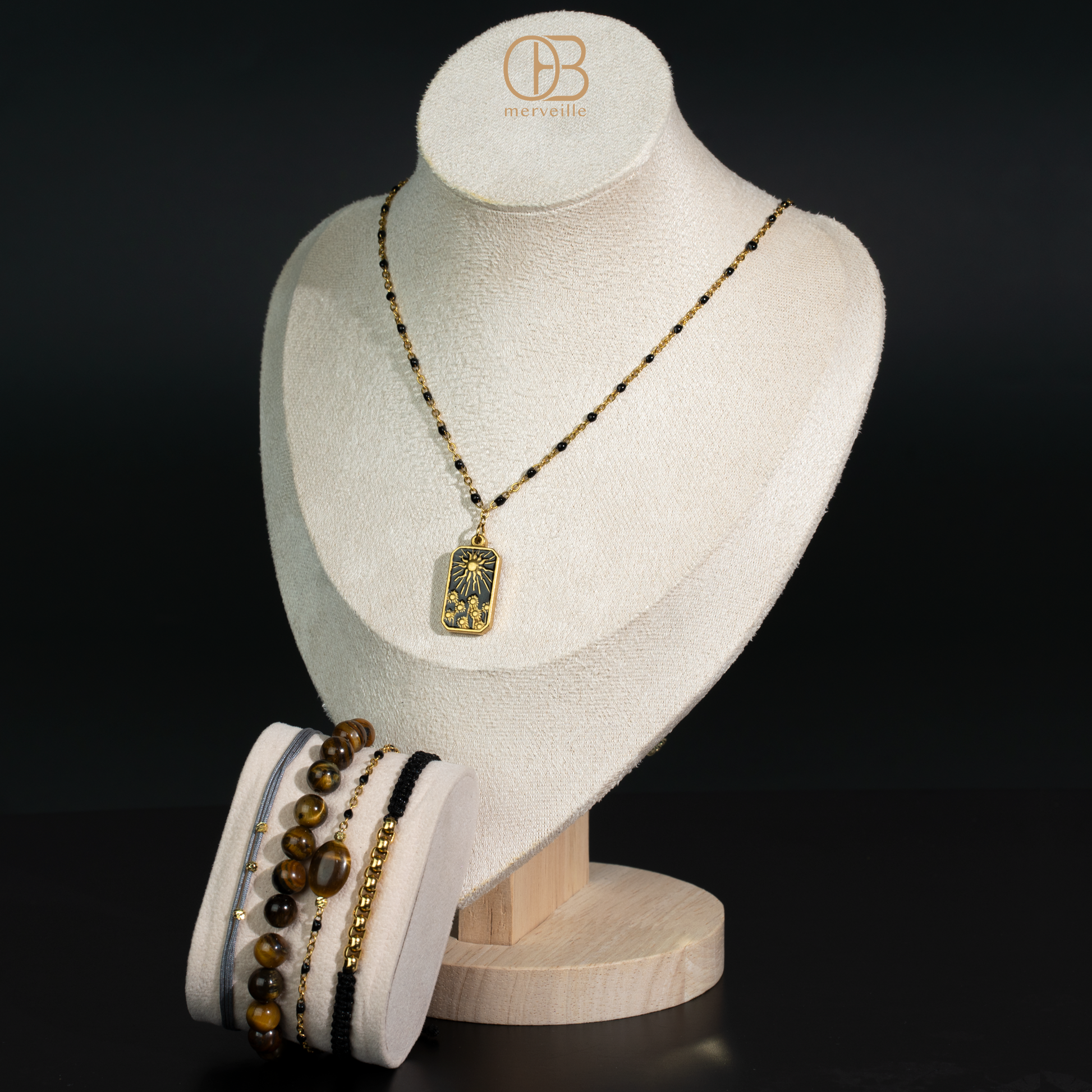Sublimez vos looks avec notre set exclusif Marron : 4 bracelets + 1 collier en acier inoxydable premium.