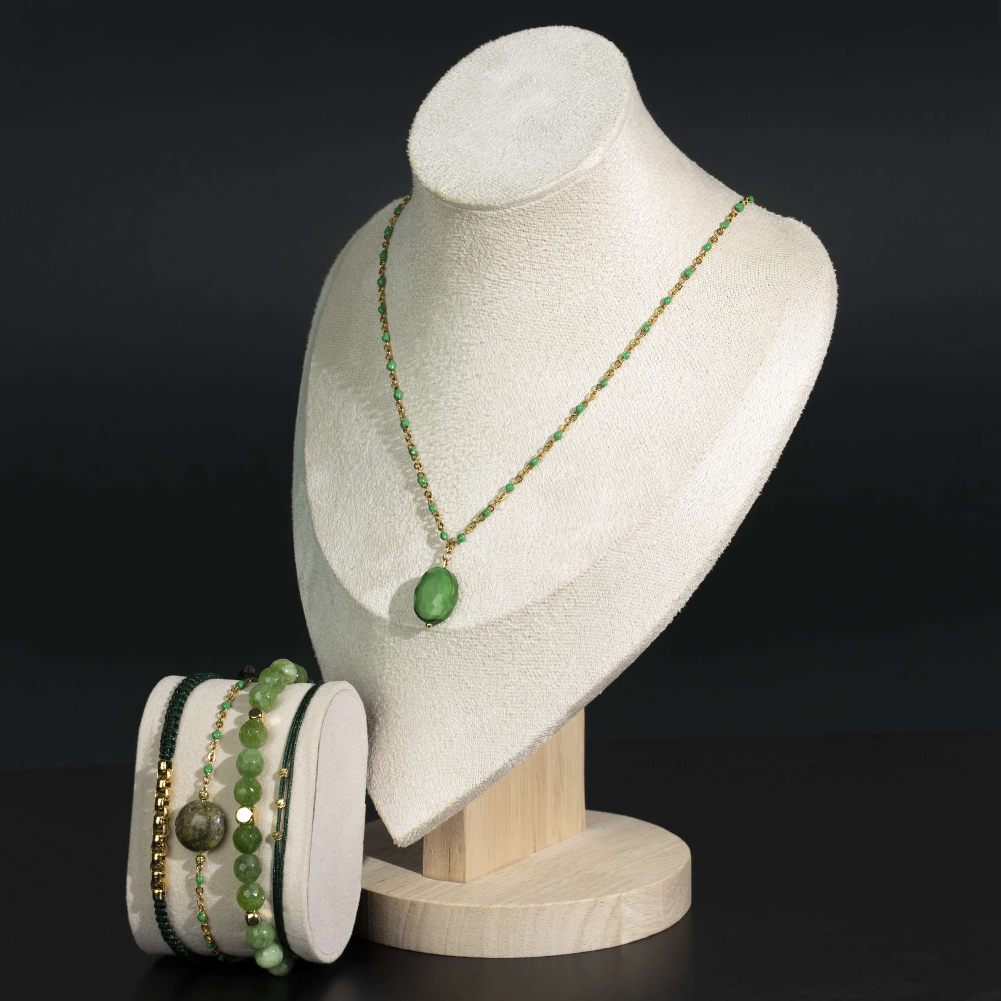 Bijoux faits à la main en acier inoxydable premium avec pierres naturelles.